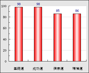 成功運 目的に対する成功運の強さをあらわします。この点数が高いほど自分の思い通りに成功し、逆に悪いと逆境・批判・障害などに苦心します。 98点