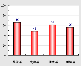 健康運 体力・健康に恵まれるか否かをあらわします。先天的に健康に恵まれても、これが悪いと次第に病弱となり、種々の病気に悩まされやすくなります。 61点