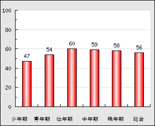 | 壮年期 | 35~50歳頃 | 56.8点+ 1.9 |