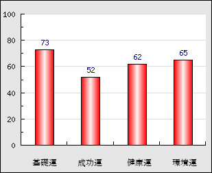 環境運 家庭や職場等での援助運・環境運を司ります。これが良いと配偶者や子供・職場の同僚などから助力が得られやすく、悪いと波乱・不和・孤独などがあります。 65点