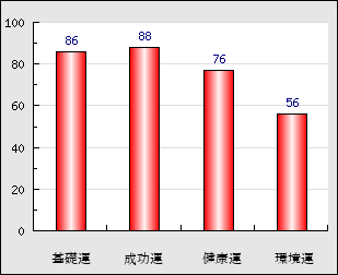 環境運 家庭や職場等での援助運・環境運を司ります。これが良いと配偶者や子供・職場の同僚などから助力が得られやすく、悪いと波乱・不和・孤独などがあります。 56点