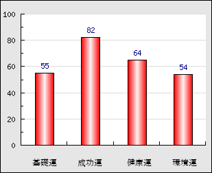 成功運 目的に対する成功運の強さをあらわします。この点数が高いほど自分の思い通りに成功し、逆に悪いと逆境・批判・障害などに苦心します。 82点