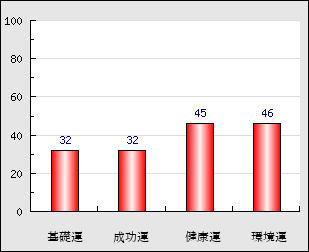 環境運 家庭や職場等での援助運・環境運を司ります。これが良いと配偶者や子供・職場の同僚などから助力が得られやすく、悪いと波乱・不和・孤独などがあります。 46点