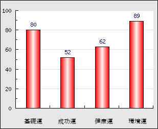 環境運 家庭や職場等での援助運・環境運を司ります。これが良いと配偶者や子供・職場の同僚などから助力が得られやすく、悪いと波乱・不和・孤独などがあります。 89点