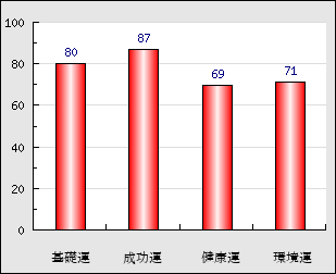 環境運 家庭や職場等での援助運・環境運を司ります。これが良いと配偶者や子供・職場の同僚などから助力が得られやすく、悪いと波乱・不和・孤独などがあります。 71点