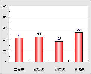 環境運 家庭や職場等での援助運・環境運を司ります。これが良いと配偶者や子供・職場の同僚などから助力が得られやすく、悪いと波乱・不和・孤独などがあります。 53点