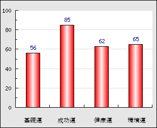 環境運 家庭や職場等での援助運・環境運を司ります。これが良いと配偶者や子供・職場の同僚などから助力が得られやすく、悪いと波乱・不和・孤独などがあります。 65点