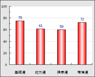 環境運 家庭や職場等での援助運・環境運を司ります。これが良いと配偶者や子供・職場の同僚などから助力が得られやすく、悪いと波乱・不和・孤独などがあります。 72点