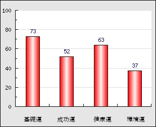 健康運 体力・健康に恵まれるか否かをあらわします。先天的に健康に恵まれても、これが悪いと次第に病弱となり、種々の病気に悩まされやすくなります。 64点