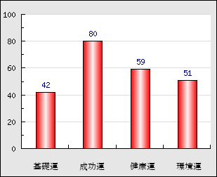 成功運 目的に対する成功運の強さをあらわします。この点数が高いほど自分の思い通りに成功し、逆に悪いと逆境・批判・障害などに苦心します。 80点