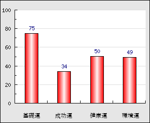 環境運 家庭や職場等での援助運・環境運を司ります。これが良いと配偶者や子供・職場の同僚などから助力が得られやすく、悪いと波乱・不和・孤独などがあります。 49点
