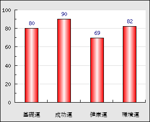 成功運 目的に対する成功運の強さをあらわします。この点数が高いほど自分の思い通りに成功し、逆に悪いと逆境・批判・障害などに苦心します。 90点