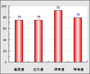 成功運 目的に対する成功運の強さをあらわします。この点数が高いほど自分の思い通りに成功し、逆に悪いと逆境・批判・障害などに苦心します。 75点
