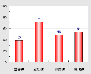 成功運 目的に対する成功運の強さをあらわします。この点数が高いほど自分の思い通りに成功し、逆に悪いと逆境・批判・障害などに苦心します。 71点