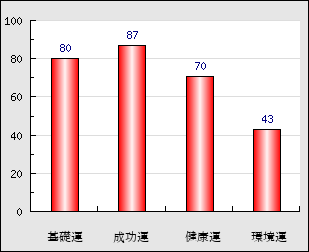 環境運 家庭や職場等での援助運・環境運を司ります。これが良いと配偶者や子供・職場の同僚などから助力が得られやすく、悪いと波乱・不和・孤独などがあります。 43点