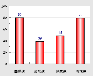 | 環境運 | 家庭や職場等での援助運・環境運を司ります。これが良いと配偶者や子供・職場の同僚などから助力が得られやすく、悪いと波乱・不和・孤独などがあります。 | 79点 |