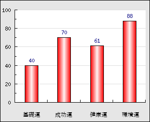 環境運 家庭や職場等での援助運・環境運を司ります。これが良いと配偶者や子供・職場の同僚などから助力が得られやすく、悪いと波乱・不和・孤独などがあります。 88点