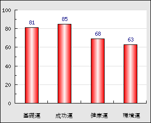 成功運 目的に対する成功運の強さをあらわします。この点数が高いほど自分の思い通りに成功し、逆に悪いと逆境・批判・障害などに苦心します。 85点