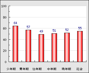 | 壮年期 | 35~50歳頃 | 49点- 6.0 |