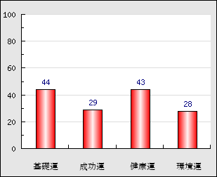 環境運 家庭や職場等での援助運・環境運を司ります。これが良いと配偶者や子供・職場の同僚などから助力が得られやすく、悪いと波乱・不和・孤独などがあります。 28点