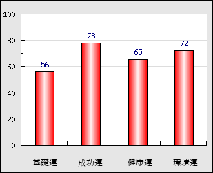 成功運 目的に対する成功運の強さをあらわします。この点数が高いほど自分の思い通りに成功し、逆に悪いと逆境・批判・障害などに苦心します。 78点