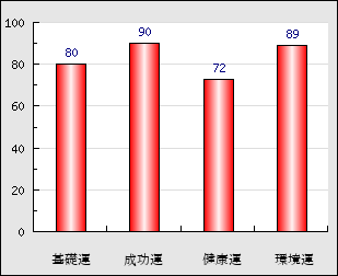 成功運 目的に対する成功運の強さをあらわします。この点数が高いほど自分の思い通りに成功し、逆に悪いと逆境・批判・障害などに苦心します。 90点