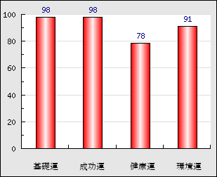 | 環境運 | 家庭や職場等での援助運・環境運を司ります。これが良いと配偶者や子供・職場の同僚などから助力が得られやすく、悪いと波乱・不和・孤独などがあります。 | 91点 |