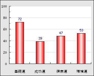 環境運 家庭や職場等での援助運・環境運を司ります。これが良いと配偶者や子供・職場の同僚などから助力が得られやすく、悪いと波乱・不和・孤独などがあります。 53点
