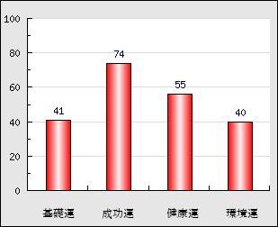 成功運 目的に対する成功運の強さをあらわします。この点数が高いほど自分の思い通りに成功し、逆に悪いと逆境・批判・障害などに苦心します。 74点