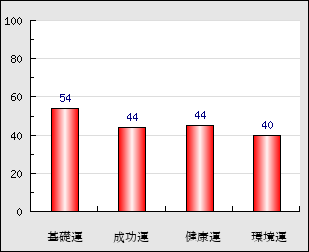 成功運 目的に対する成功運の強さをあらわします。この点数が高いほど自分の思い通りに成功し、逆に悪いと逆境・批判・障害などに苦心します。 44点