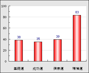 環境運 家庭や職場等での援助運・環境運を司ります。これが良いと配偶者や子供・職場の同僚などから助力が得られやすく、悪いと波乱・不和・孤独などがあります。 83点