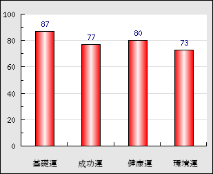 環境運 家庭や職場等での援助運・環境運を司ります。これが良いと配偶者や子供・職場の同僚などから助力が得られやすく、悪いと波乱・不和・孤独などがあります。 73点