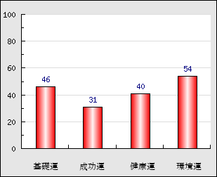 環境運 家庭や職場等での援助運・環境運を司ります。これが良いと配偶者や子供・職場の同僚などから助力が得られやすく、悪いと波乱・不和・孤独などがあります。 54点
