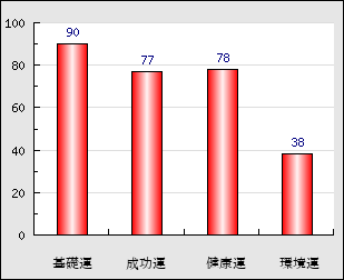 環境運 家庭や職場等での援助運・環境運を司ります。これが良いと配偶者や子供・職場の同僚などから助力が得られやすく、悪いと波乱・不和・孤独などがあります。 38点