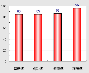 環境運 家庭や職場等での援助運・環境運を司ります。これが良いと配偶者や子供・職場の同僚などから助力が得られやすく、悪いと波乱・不和・孤独などがあります。 96点