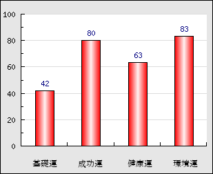 成功運 目的に対する成功運の強さをあらわします。この点数が高いほど自分の思い通りに成功し、逆に悪いと逆境・批判・障害などに苦心します。 80点