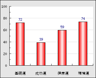 環境運 家庭や職場等での援助運・環境運を司ります。これが良いと配偶者や子供・職場の同僚などから助力が得られやすく、悪いと波乱・不和・孤独などがあります。 74点
