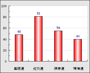環境運 家庭や職場等での援助運・環境運を司ります。これが良いと配偶者や子供・職場の同僚などから助力が得られやすく、悪いと波乱・不和・孤独などがあります。 40点