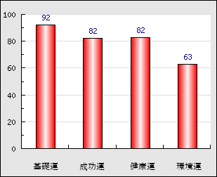環境運 家庭や職場等での援助運・環境運を司ります。これが良いと配偶者や子供・職場の同僚などから助力が得られやすく、悪いと波乱・不和・孤独などがあります。 63点