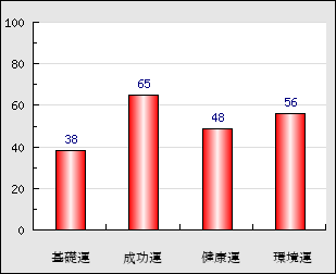 成功運 目的に対する成功運の強さをあらわします。この点数が高いほど自分の思い通りに成功し、逆に悪いと逆境・批判・障害などに苦心します。 65点