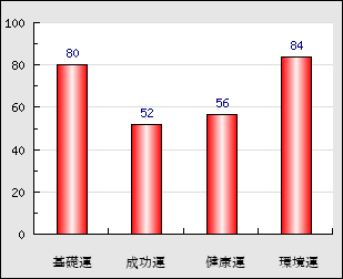 環境運 家庭や職場等での援助運・環境運を司ります。これが良いと配偶者や子供・職場の同僚などから助力が得られやすく、悪いと波乱・不和・孤独などがあります。 84点