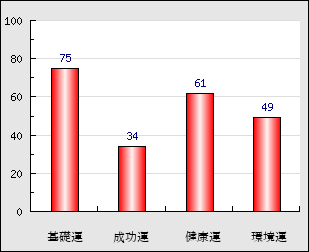環境運 家庭や職場等での援助運・環境運を司ります。これが良いと配偶者や子供・職場の同僚などから助力が得られやすく、悪いと波乱・不和・孤独などがあります。 49点