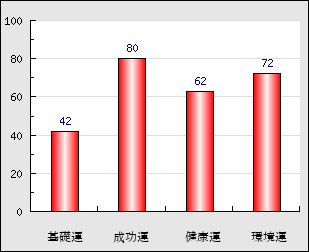 成功運 目的に対する成功運の強さをあらわします。この点数が高いほど自分の思い通りに成功し、逆に悪いと逆境・批判・障害などに苦心します。 80点