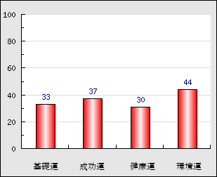 環境運 家庭や職場等での援助運・環境運を司ります。これが良いと配偶者や子供・職場の同僚などから助力が得られやすく、悪いと波乱・不和・孤独などがあります。 44点