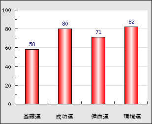 成功運 目的に対する成功運の強さをあらわします。この点数が高いほど自分の思い通りに成功し、逆に悪いと逆境・批判・障害などに苦心します。 80点
