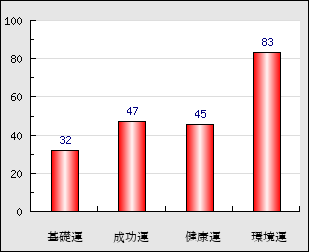成功運 目的に対する成功運の強さをあらわします。この点数が高いほど自分の思い通りに成功し、逆に悪いと逆境・批判・障害などに苦心します。 47点