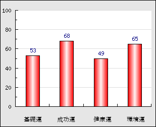 環境運 家庭や職場等での援助運・環境運を司ります。これが良いと配偶者や子供・職場の同僚などから助力が得られやすく、悪いと波乱・不和・孤独などがあります。 65点