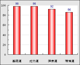 成功運 目的に対する成功運の強さをあらわします。この点数が高いほど自分の思い通りに成功し、逆に悪いと逆境・批判・障害などに苦心します。 98点