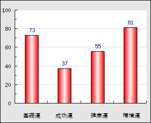 環境運 家庭や職場等での援助運・環境運を司ります。これが良いと配偶者や子供・職場の同僚などから助力が得られやすく、悪いと波乱・不和・孤独などがあります。 81点