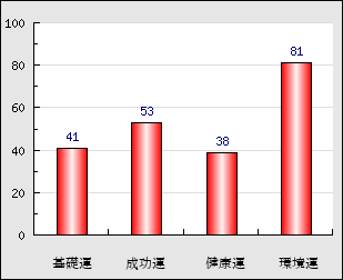環境運 家庭や職場等での援助運・環境運を司ります。これが良いと配偶者や子供・職場の同僚などから助力が得られやすく、悪いと波乱・不和・孤独などがあります。 81点